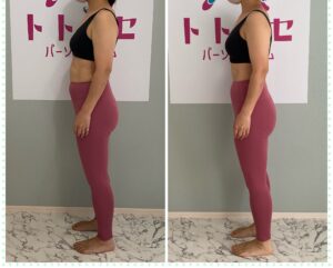 この方は体重は1キロほどの変化ですが姿勢改善により、お尻が上がり、足も細く見えるようになりました。